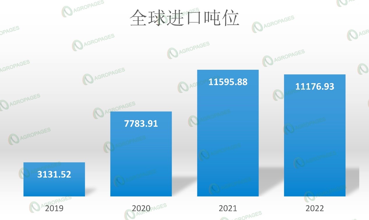 據(jù)不完全統(tǒng)計(jì),2019年全球各國進(jìn)口單氰胺僅為3131.5噸,到2021年達(dá)到了11595.8噸,年均增長率達(dá)到98%。而2022年1-10月已經(jīng)達(dá)到去年全年水平,各國都在進(jìn)一步增加進(jìn)口。據(jù)了解該含量的單氰胺主要應(yīng)用在植物破眠領(lǐng)域,且已經(jīng)在破眠領(lǐng)域成為一款主打產(chǎn)品同時(shí)市場也比較穩(wěn)定(排除未來的禁限用風(fēng)險(xiǎn))。